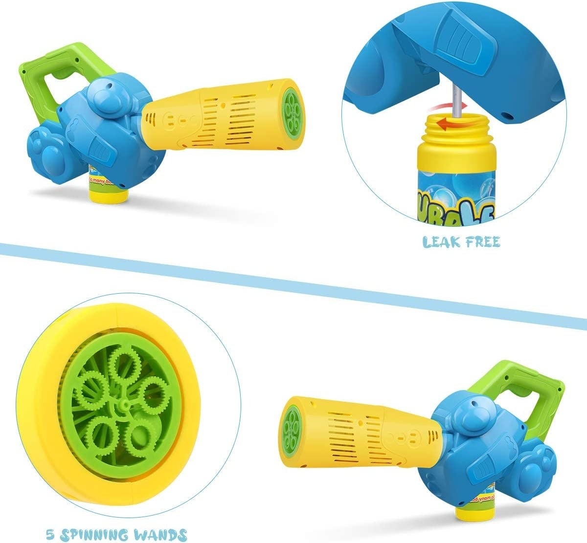 22. A too-cute bubble leaf blower if your little one wants to help with the curb appeal of your home. This comes with three bottles of bubble solution so they can spray bubbles every day this summer.
