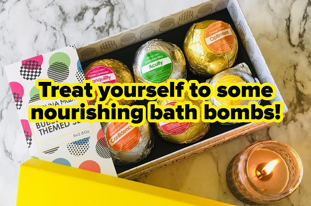 39. Essential oil–scented bath bombs sure to help you unwind as a sea salt, sunflower seed oil, shea butter, and coconut oil formula moisturizes and calms you skin. Give yourself the gift of an at-home spa day!