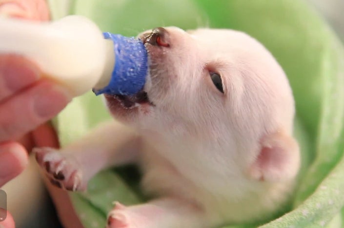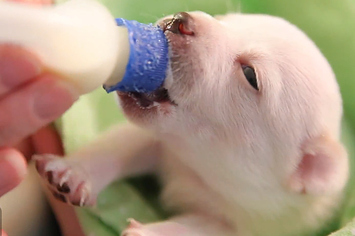 These pups haven't had their eyes open for very long, but you can bet they know food when they see it!