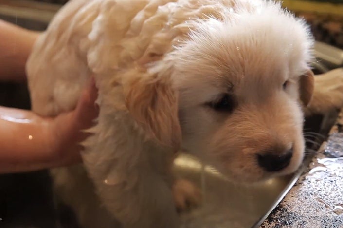 This is just a bit of cuteness overdose with a little puppy bath and grooming afterward.