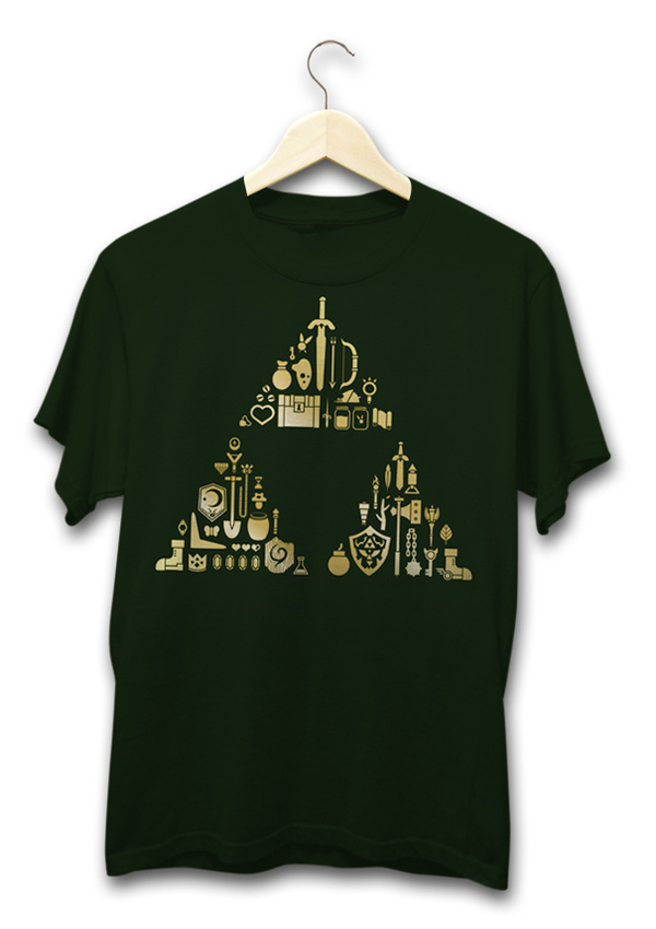 I love this T-shirt; it has so many of the weapons and items the classic video game character Link called his own over his prolific career at Nintendo. Buy the shirt here.
