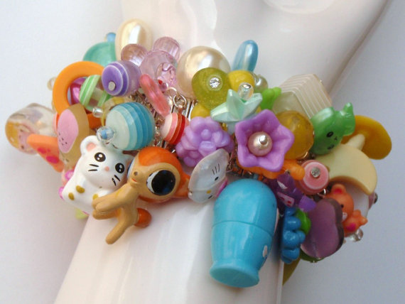 PoniesOfDooom is an Etsy seller who uses toys to supplement the colorful beads in her work. They are chunky, super bright and would bring a solid sense of fun to any ensemble. (via The Uniblog)