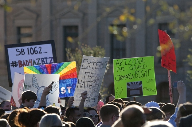 The ACLU and HRC — among many other local and national groups — have railed against legislation proposed in many states, including Kansas and Arizona, where a bill that would add protections for people and businesses who wish to deny services to others if doing so violated their religious beliefs was ultimately vetoed by Gov. Jan Brewer after facing an avalanche of opposition from citizens, religious groups, and businesses. Opponents have been successful in preventing similar bills from becoming law so far this year in several states like Georgia, South Dakota, Idaho, Maine, and several others.