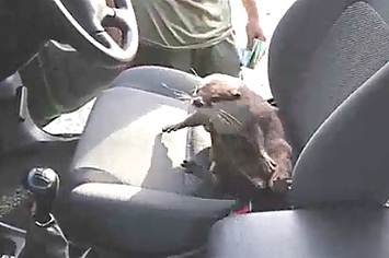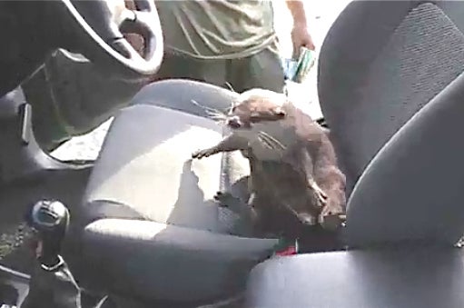 Nosy Otter Roots Around Parked Car