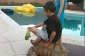 AND the kid is steering with a piece of lettuce. Doesn't this only work in cartoons? (via)