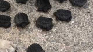 Apparently some guy found some really cold (and frightened!) snapping turtle hatchlings and decided to ramp up the cute by adding kitties and puppies. Except the creepy voice is well... creepy... and well, just watch it for yourself.