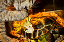 After a long talk with a tortoise, this cat decided to give being a vegetarian a shot.