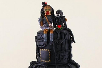 Here is a Alien and Predator wedding cake. I give it six months before one of them tries to kill the other.