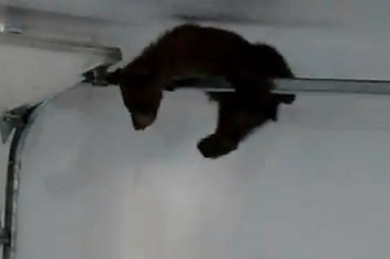 Bear Cub Gets Stuck In Garage
