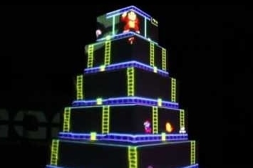 New Jersey based POSHdjs had an idea of using a projector on a cake what was more perfect than projecting classic NES games like Donkey Kong and Dig Dug onto this couple’s 5-tiered wedding cake.