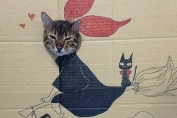 To celebrate his birthday, Guagua's owner adds a little spice to his favorite play toy: a cardboard box.
