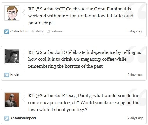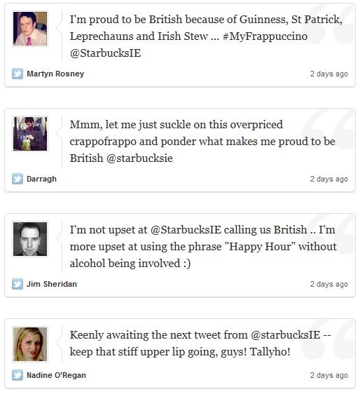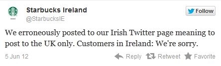 The employee who runs a Starbucks Twitter account inadvertently insulted a nation with a tweet that indicated that the Republic of Ireland belongs to the United Kingdom.