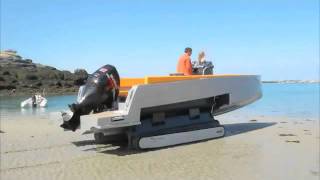 A speed boat that morphs into a tank-tracked beach lander. It’s a 29-foot speed boat with a 35-knot top speed over water and seating capacity for up to ten. But closer to land it can deploy retractable caterpillar tracks that can carry it across dry ground at up to five miles per hour. That’s not very fast, but that’s not why the Iguana 29 is cool.