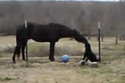 Watch Lucy (a Portuguese water dog) and Whiskey Brown (a quarter horse stallion) play in the pasture. It's 6 minutes of smiling at least.