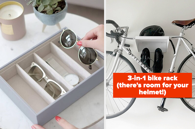 16. A sunglasses organizing tray that'll help keep your spectacles in order. Because it's lined with plush felt, you won't have to worry about scratching up the lenses when you pop your pairs into storage.