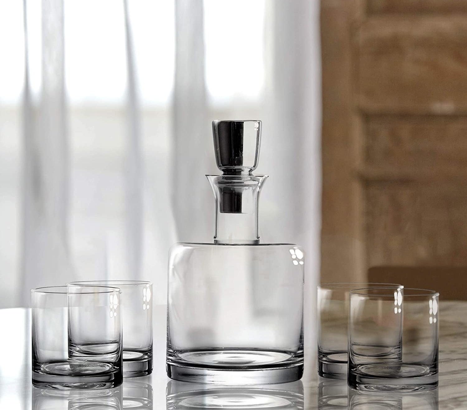 13. An elegant five-piece decanter set that'll help them store their booze in style. Reviewers say it's more lightweight than other similar products so they won't need to have Hulk muscles to pour themself a drink.