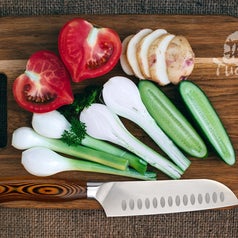5. No chef's kitchen is complete without a sturdy butcher block cutting board. The beautiful acacia wood makes a great addition to any kitchen, and its natural texture will help keep your knives sharper than regular plastic boards.