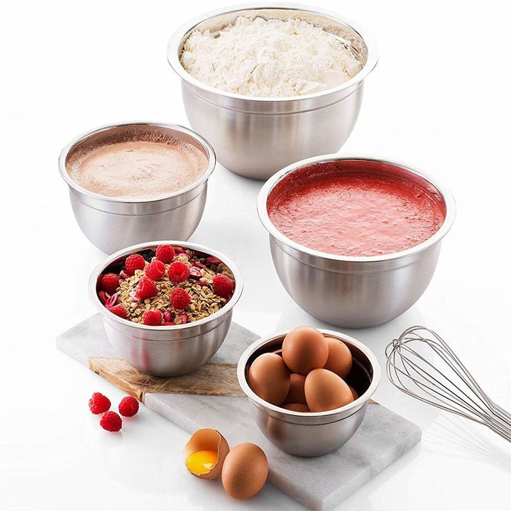 17. Whip up a batch of something scrumptious in these stainless steel mixing bowls that are not only easy to clean, but also stackable. They'll keep your kitchen looking neat and professional, no matter how long it takes you to get that chocolate chip cookie recipe right.