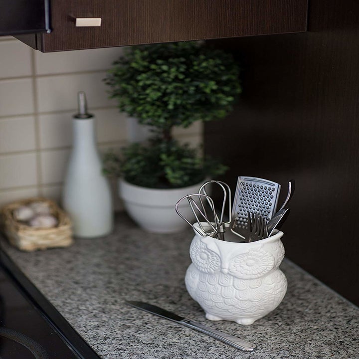 15. This adorable utensil organizer that'll help them organize their kitchen accessories by colour, size, shape, or preference. Owl be shocked if they don't love it!