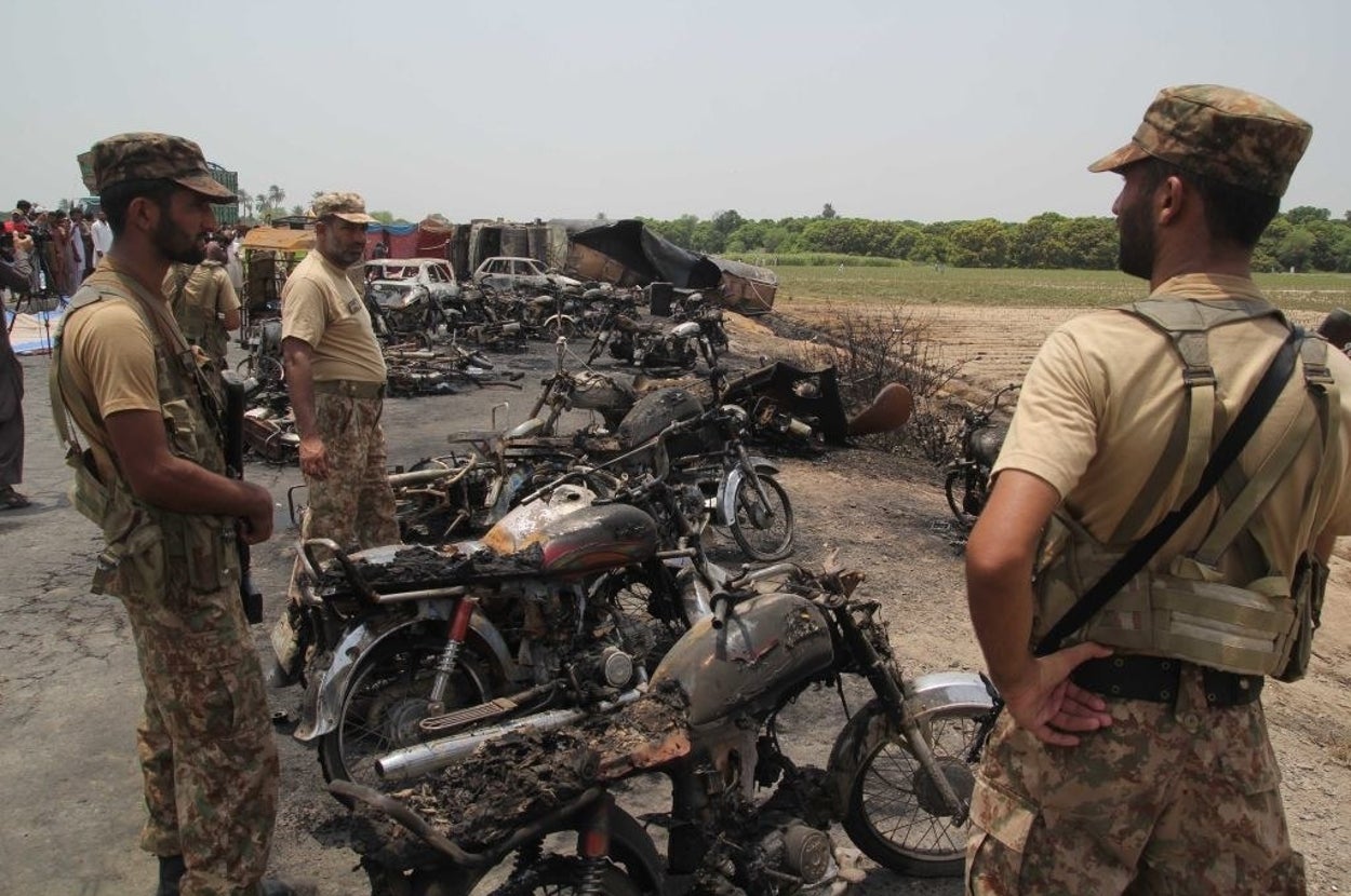 “People of the area and passersby had started gathering fuel when the tanker exploded, burning everybody on and around the spot,” provincial government spokesman Malik Muhammad Ahmed Khan told Reuters.