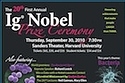 The 20th Annual Ig Nobel Prize Ceremony Awards were held tonight in Cambridge, MA. Former winners include The Bra/Gasmask combo (acceptance video) and MRI sex. Tonight's winners follow. Video footage will be available here, hopefully before too long. Descriptions via AP.