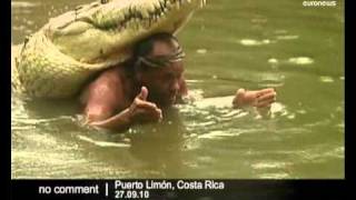 Pocho is a 17 foot long crocodile. He and Chito have been living together for 20 years, according to what Chito says in a different video.