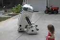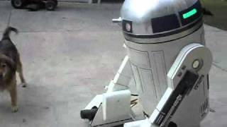 An R2D2 robot that is big enough for a full size person to fit in. Equipped with sounds, internal fans, LEDs, motors and rotating dome. Made out of a plastic barrel.