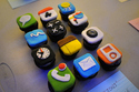 Can't afford the iPhone? Snack on these iPhone Apps Cupcakes instead. Winner of the NYC Cupcake Decorating Championships, creators Nick and Danielle Bilton made these things to be eaten. "Made of a tasty chocolate cake with a grey butter cream and fondant iPhone applications: 100% edible and whole lotta’ tasty sugar."