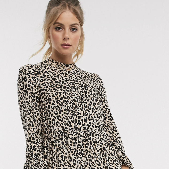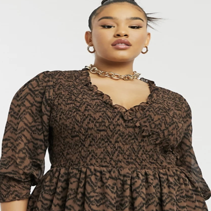 4. This brown and black midi smock dress would look so good paired with some gorgeous black heels.