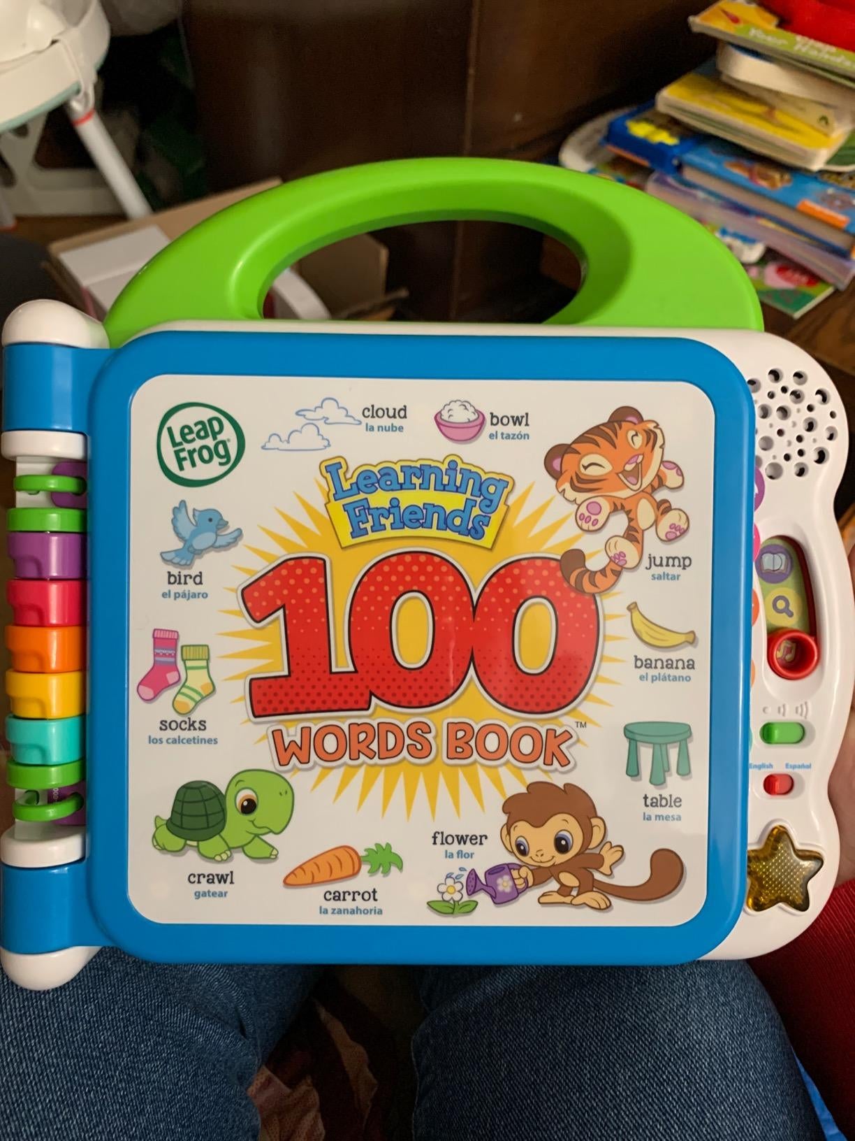 9. A LeapFrog 100 Words Book, aka an interactive book that will help your child learn the alphabet and words. It has fun sounds, images, lights and activities to prevent that *boredom meltdown.*