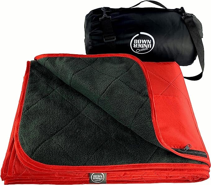 7. A water- and wind-proof outdoor blanket that's made with extra thick fleece to protect you from the cold. I mean, what's more cozy than getting under a warm blanket while sipping hot cocoa? You can also use this as a picnic blanket, to stay warm during outdoor events, and for camping. It even has a zippered pouch to store things!