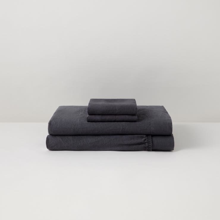 Get the original mattress for $350+ (available in sizes twin–California king) and the linen sheet set for $175+ (available in sizes twin–California king and six colors).