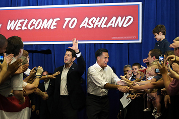 Romney was joined by Paul Ryan for their first joint rally since their announcement early Saturday, speaking to a crowd of 1,500, with more than 500 outside in overflow space — a rarity on the Romney trail.